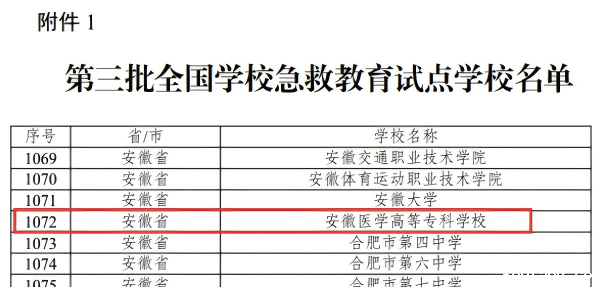 近日,教育部公布第三批全国学校急救教育试点学校认定名单,经学校自主申报、省级教育行政部门遴选推荐、专家复核,我校成功入选第三批全国学校急救教育试点学校。此次入选是学校贯彻落实《“健康中国2030”规划纲要》的重要里程碑,标志着我校急救教育工作正式纳入国家公共卫生体系建设布局。
